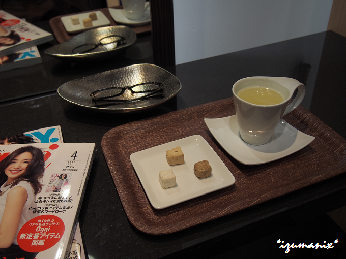 待ち時間中には、なんと!飲み物とお菓子を提供してくれます。(凄く嬉しいサービスですよね♪)