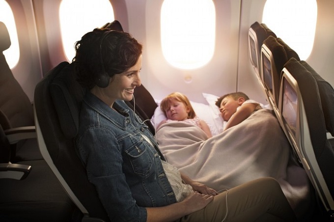エコノミー座席において画期的な取り組み!平行に使用すれば、小さなお子様も横になれるから大変便利ですね。