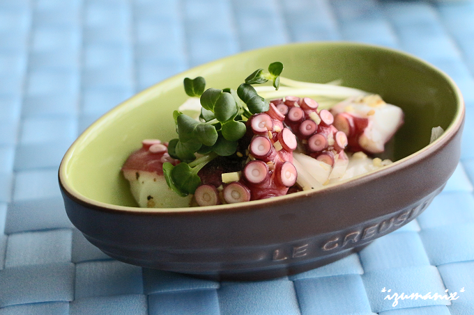 蒸しだこは度々購入しますが、いつもはキュウリと若布の酢の物(マンネリ状態)にしちゃうのだけれど、