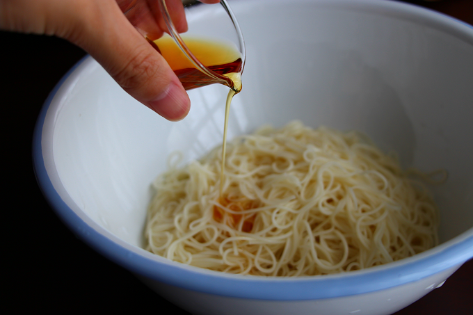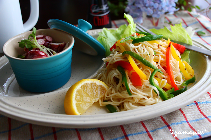 庄司いずみさんお得意の野菜たっぷりのおひる麺は、普通のそうめんがオリエンタルにアレンジされています。