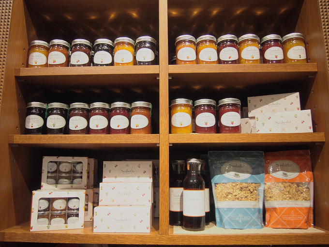 お土産に最適な、フルーツスプレッド(砂糖控えめのジャム)、紅茶、グラノーラだけでなく、