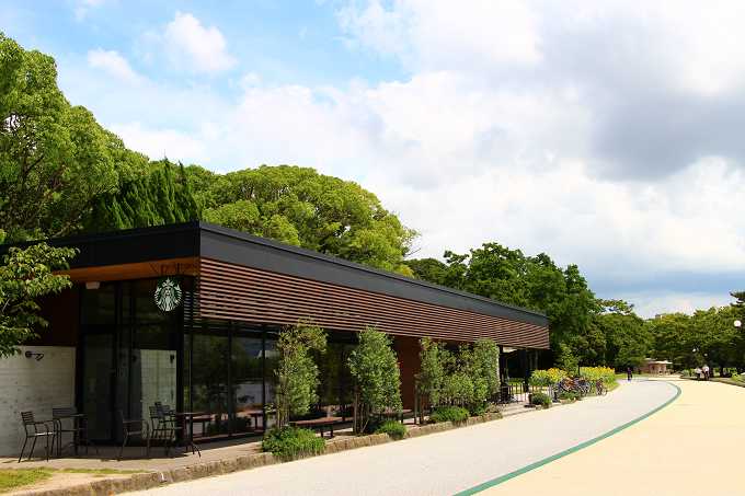 公園の景観維持に努めたデザイン建設のスターバックス コーヒー 福岡大濠公園店。