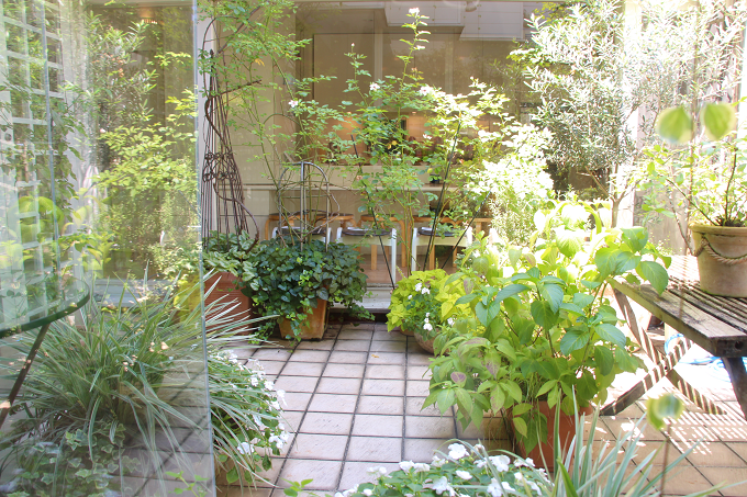 閑静な住宅街に佇む一軒家の扉の先に、緑溢れるガーデン。