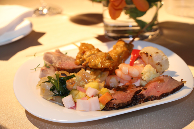 色とりどりの美味しい食事の数々。肉や魚介をはじめ、野菜もたっぷりです!