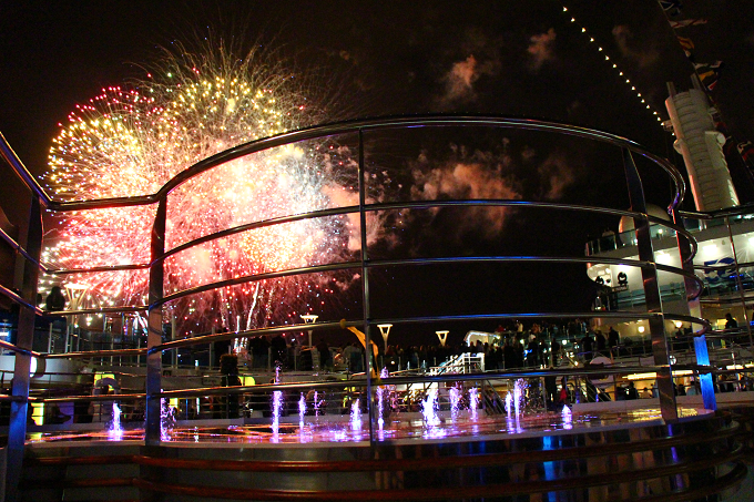 プリンセス・クルーズの名物「シャンパン・ウォーター・フォール」を『リーガル・プリンセス』アトリウムで!