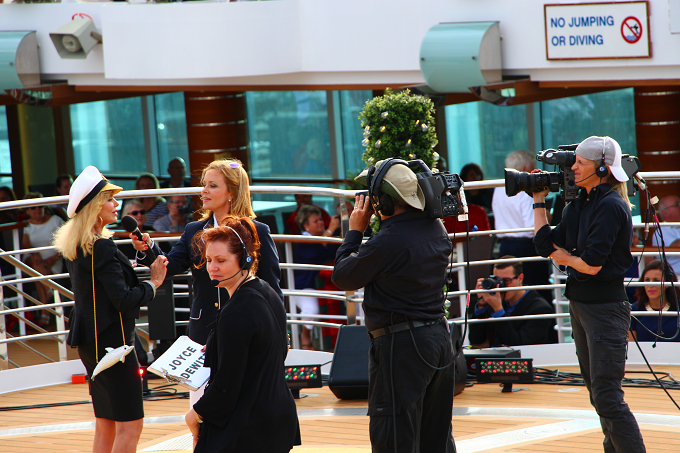 新造船「リーガル・プリンセス」の船内をたっぷりと密着!~前編~の続きです。 後編では、キッズ&ティーンゾーン、フィットネスセンターなどを中心にご紹介します。 その前に、アトリウムで特別な催されたクルーズ・ジャーナリストの結婚式披露の様子も!