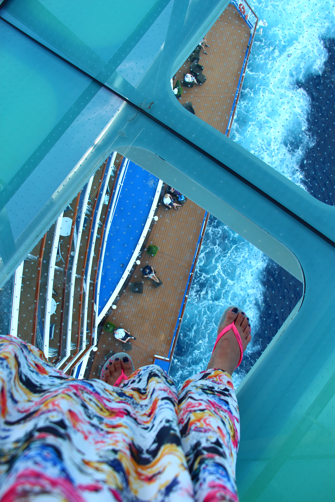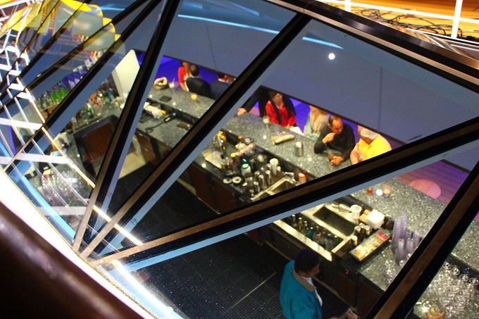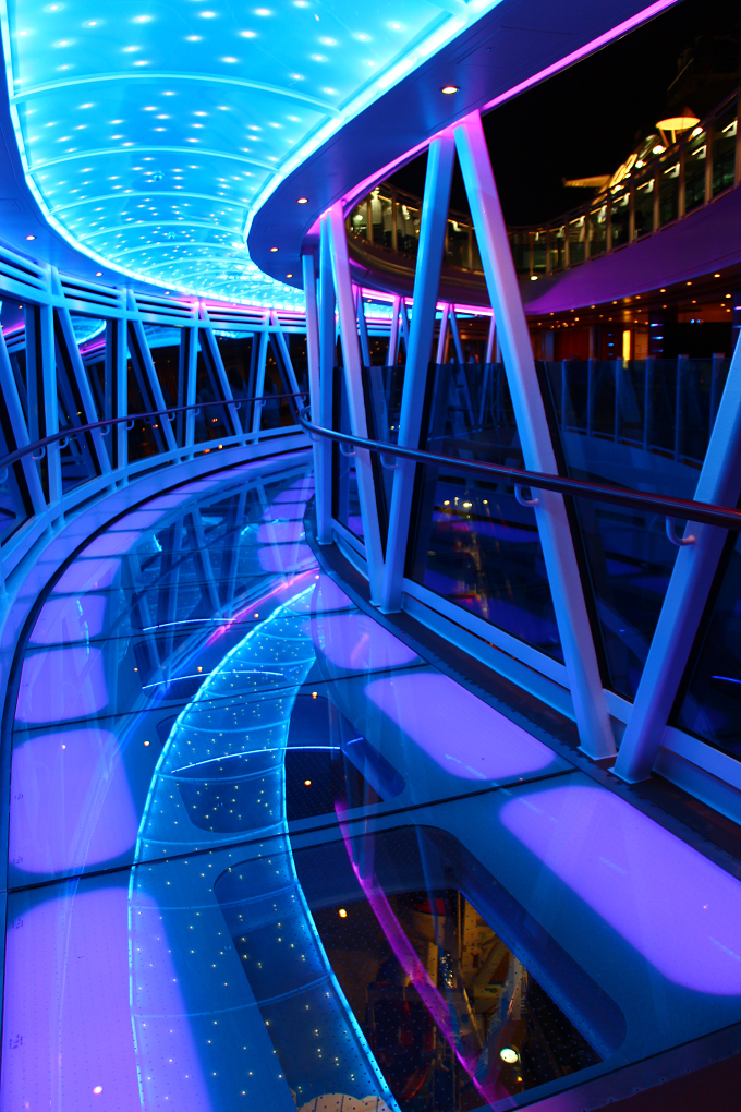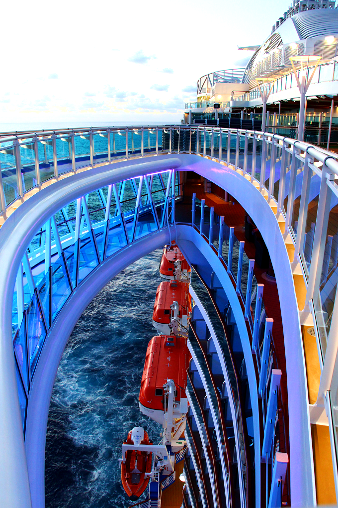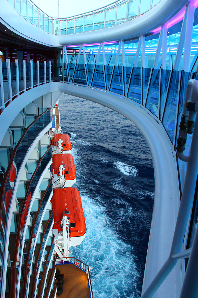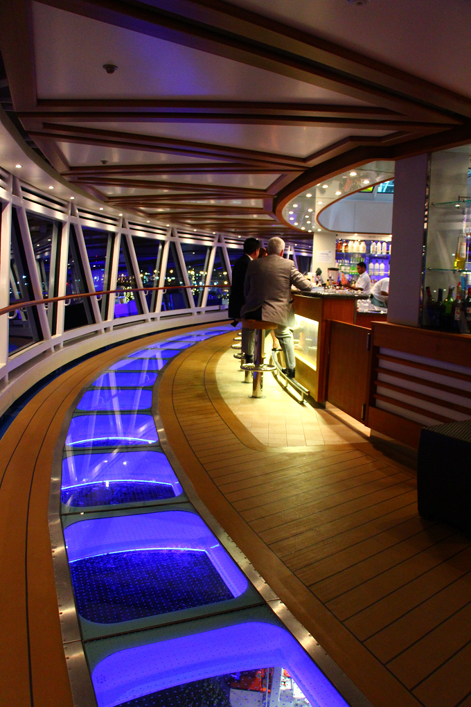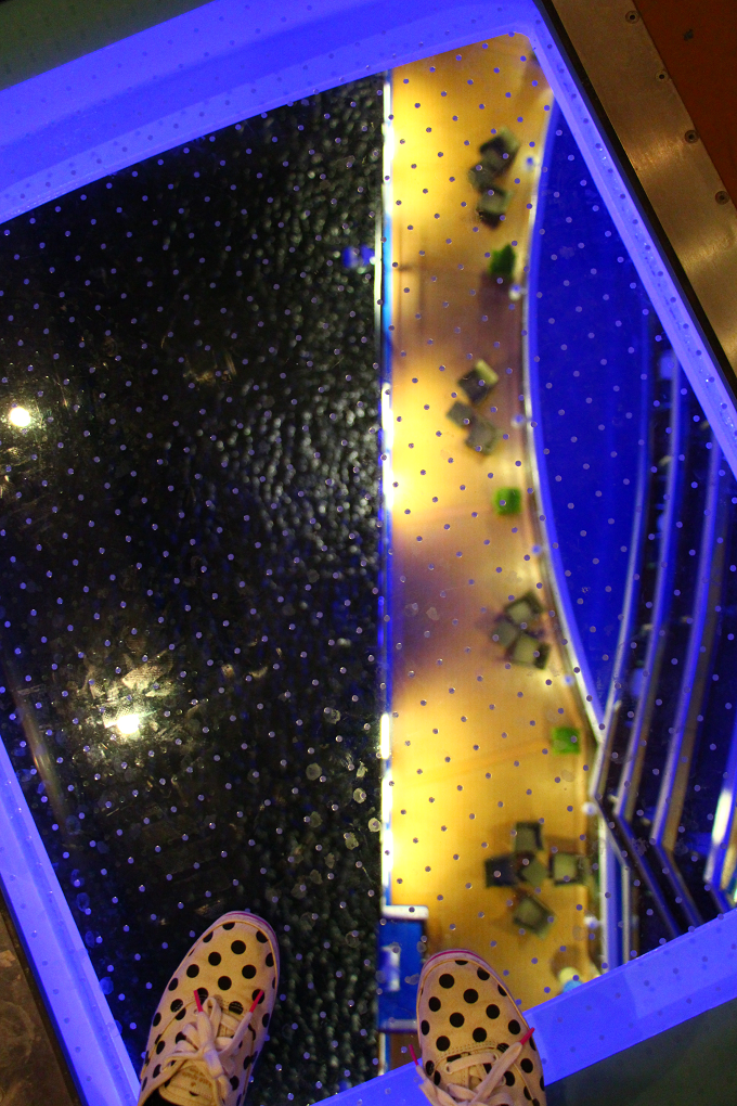 『リーガル・プリンセス』の最も特徴的なものの一つといえば「シー・ウォーク」! 船体から8.5メートル以上飛び出した、ガラス張りフロアの回廊では、約40メートル下に広がる海を足元から眺められることが出来て、スリルがありますよ。