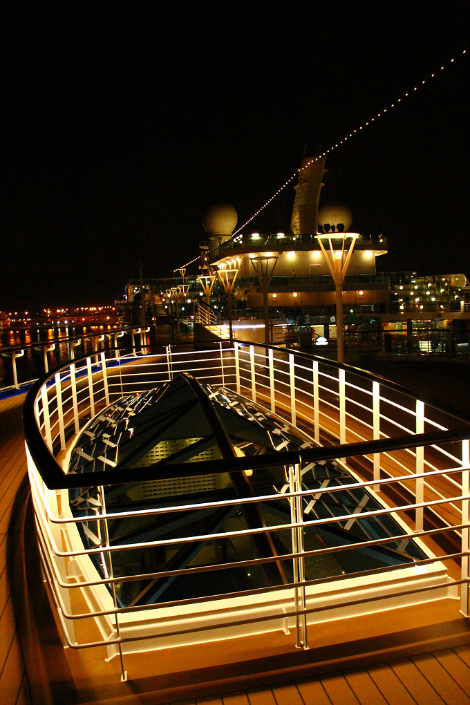 新造船『リーガル・プリンセス』の楽しみは夜にもたっぷりと・・・!! 音楽にあわせて10メートルの高さまであがる噴水とイルミネーションのショー「プリンセス・ウォーターカラー・ファンタジー・ショー」、 ラスベガス・スタイルのエンターテイメント・ショー、一晩限定のナイトクラブ「ナイト・スカイ・ラウンジ」など。