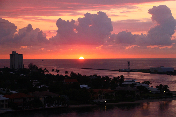 『リーガル・プリンセス』乗船中に見たフォートローダデール・エバーグレーズ港からのサンライズ