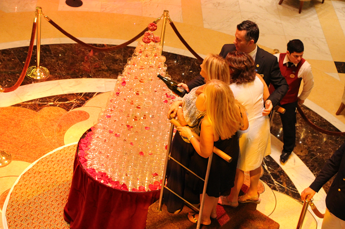 プリンセス・クルーズの名物「シャンパン・ウォーター・フォール」を『リーガル・プリンセス』アトリウムで!