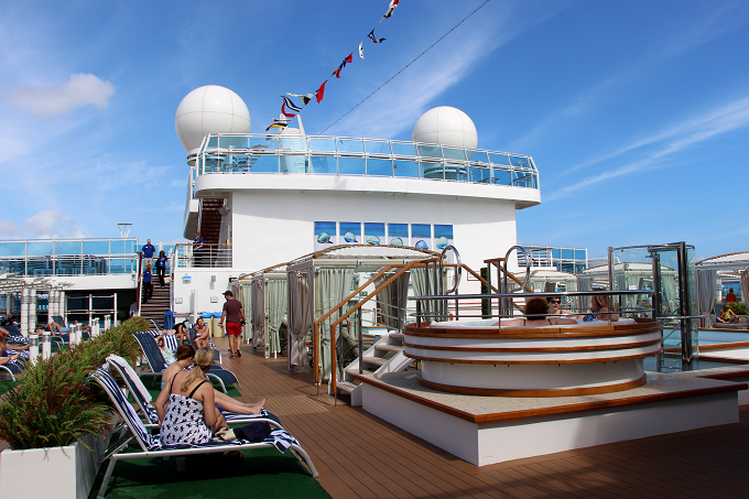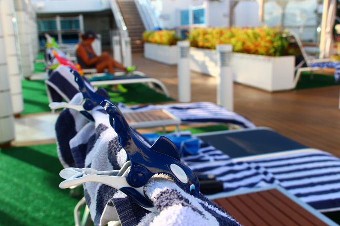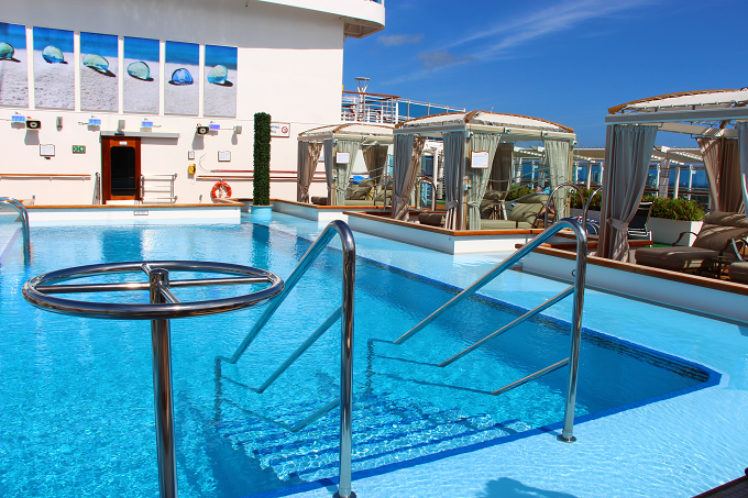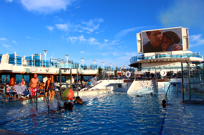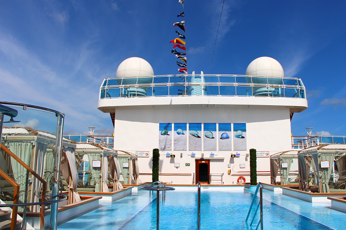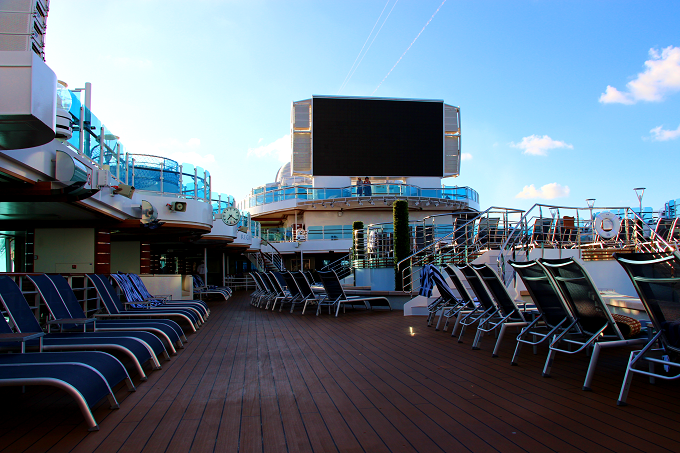 先ずは、大型船クルーズ旅行といえば真っ先にイメージが沸く方が多いであろう、豪華な船上プール!