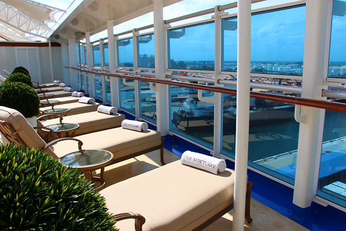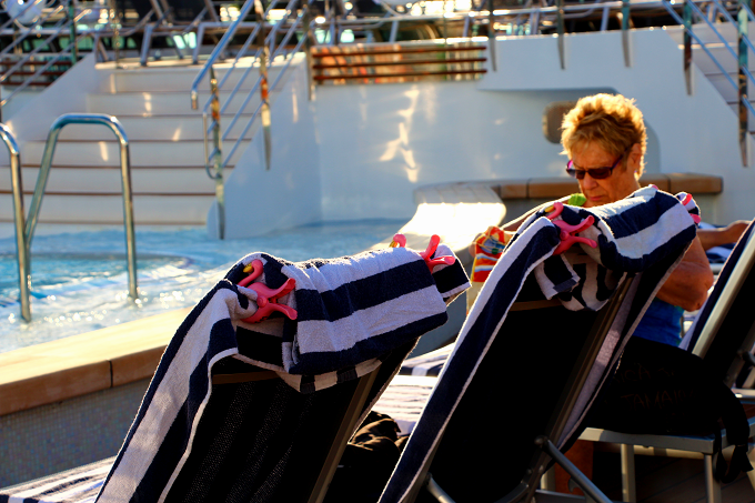 「サン・デッキ17」の船前方には、「リトリート・プール」の周り設置されている、
