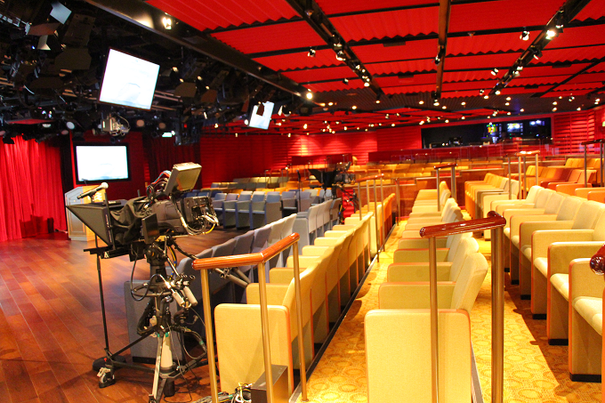洋上初のTVスタジオ「プリンセス・ライブ!」は、朝8時から深夜0時まで番組を放送。
