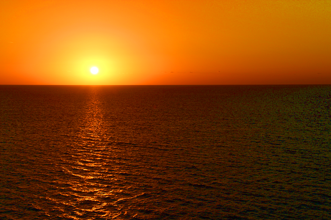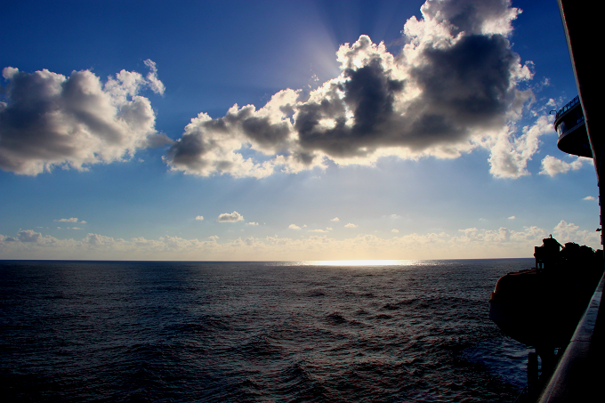 『リーガル・プリンセス』帰港時に見たサンライズの様子をレポート! お待ちかねのサンライズは、6時35分に見え始めましたよ!! フォートローダデール・エバーグレーズ港へ入港しはじめた5時半頃~朝焼けまでの様子を詳しくご紹介。