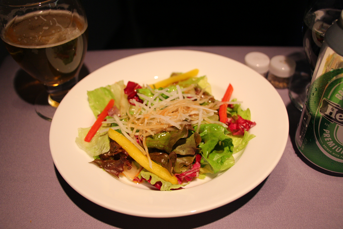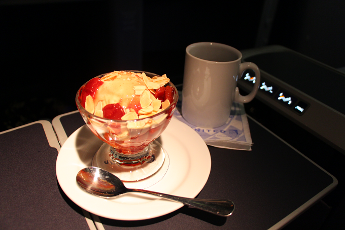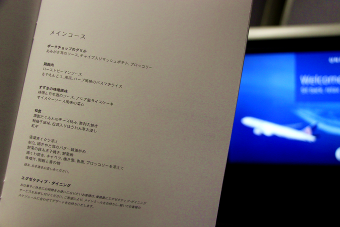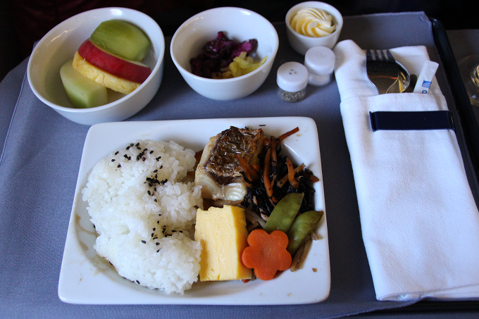 ビジネスファーストクラスの機内食は、洋食(肉or魚)だけでなく和食も選べます。