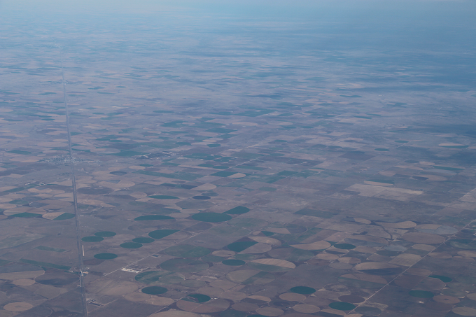 「たくさんの円グラフが見える!」と思いきや、大規模な円形農場(センターピボット)の数々。