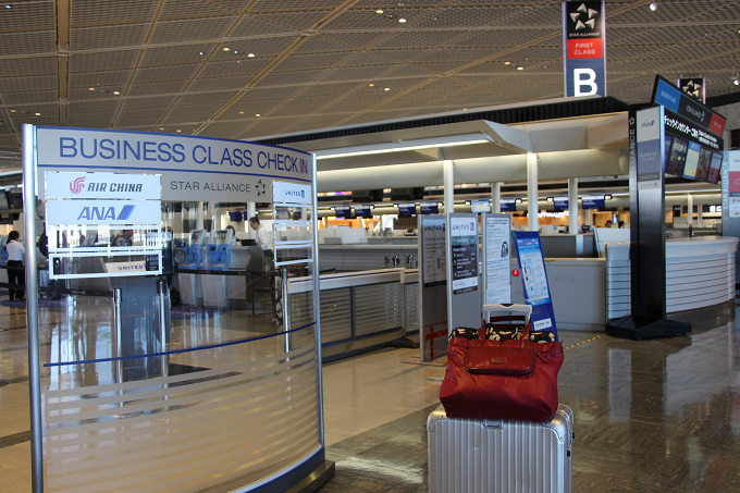 ビジネスクラスのチェックインカウンターで手荷物を預け、搭乗手続きを済ませます。