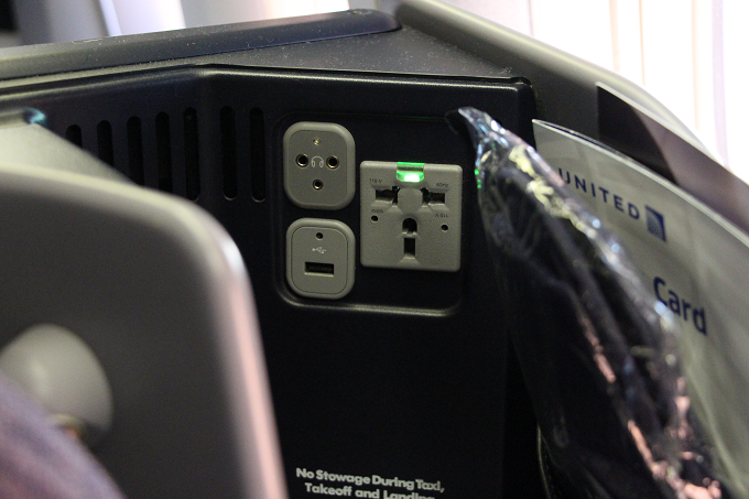 USBポート、イヤホン差し込み口、コンセントは座席のななめ後ろ(後頭部あたり)。