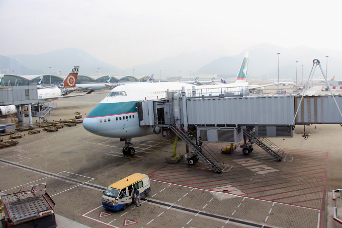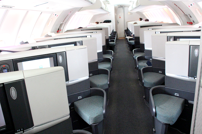 キャセイパシフィック航空 CX542便(香港→羽田)のビジネスクラス搭乗記(機内食)。 国内では既に退役をした『ジャンボジェット B747-400』に搭乗ということでワクワク!! 2階にあるビジネスクラス(アッパーデッキ)を利用。コックピットもチラリと見えたりと...興奮♪