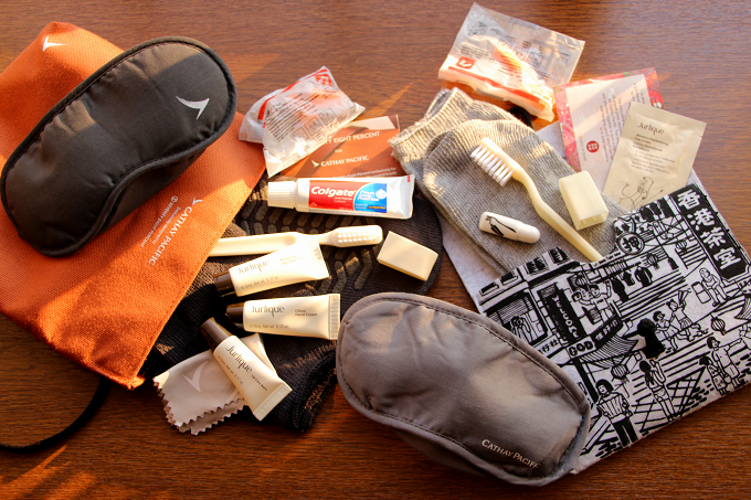 キャセイパシフィック航空 ビジネスクラス&プレミアム・エコノミークラスのアメニティキットの中身を比べてみた!