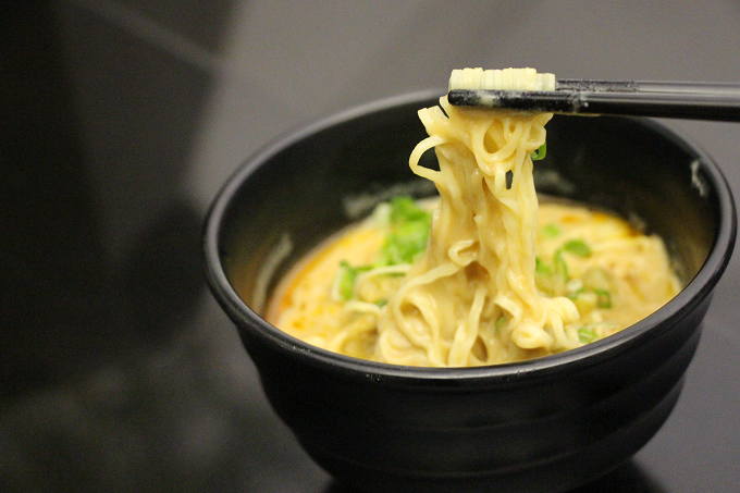 (羽田=日本で食べた麺は、日本人好みのもっちり縮れ麺だったのに対し、香港はポキポキ麺タイプ!)