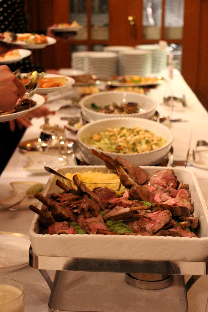 レセプションでは、サーモンや羊肉、チーズなどが、ビュッフェ形式で振る舞われました。