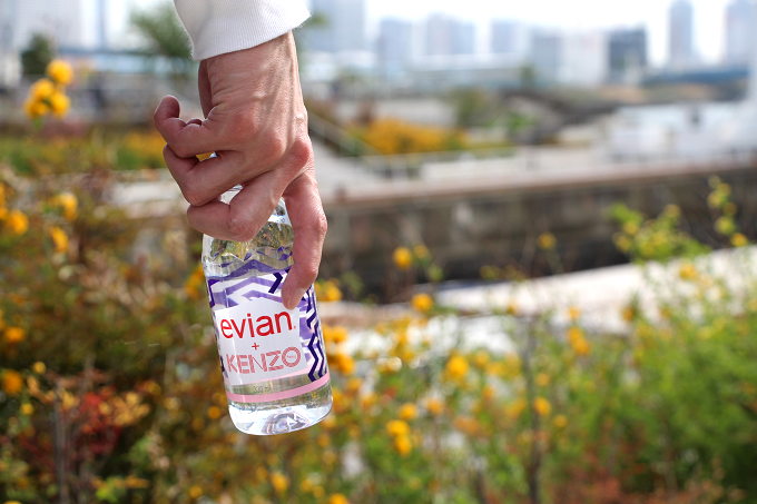 ナチュラルミネラルウォーター「evian x KENZO」のコラボレーションデザイナーボトル。