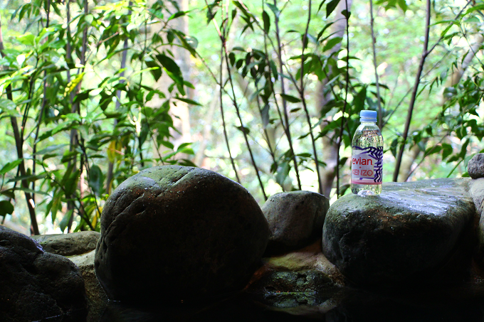 貸切温泉でも、ミネラルたっぷりのエビアンのお水がとても役立ちました...♪