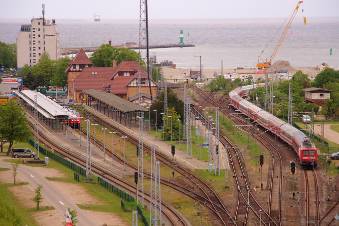 ・ヴァルネミュンデの港から列車の駅までは、目と鼻の距離感でとても近い。