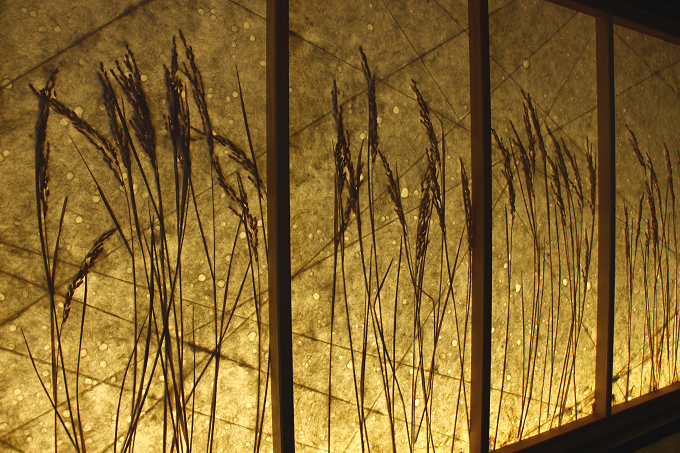 里山の収穫をイメージした、野州麻紙に漉き込まれた「稲穂」もお見事!!