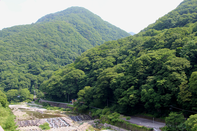 鬼怒川と男鹿川が合流する峡谷にある川治温泉。