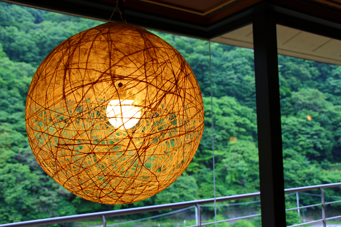 窓側には、野州麻紙を丸くかたどった「結(ゆい)ライト」が。