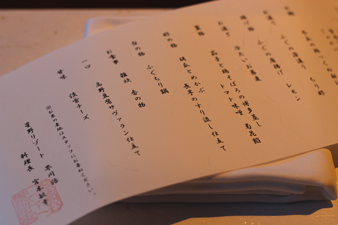 「星野リゾート 界 川治」の夕食では、特別会席の「里山温泉とらふぐ会席」を頂きました。