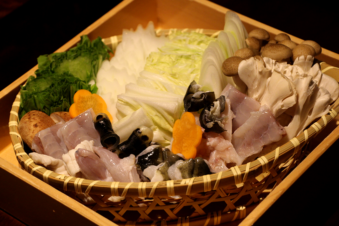 ふぐの旨味を全て味わえるふぐちり鍋も登場!盛り付けも美しい!!