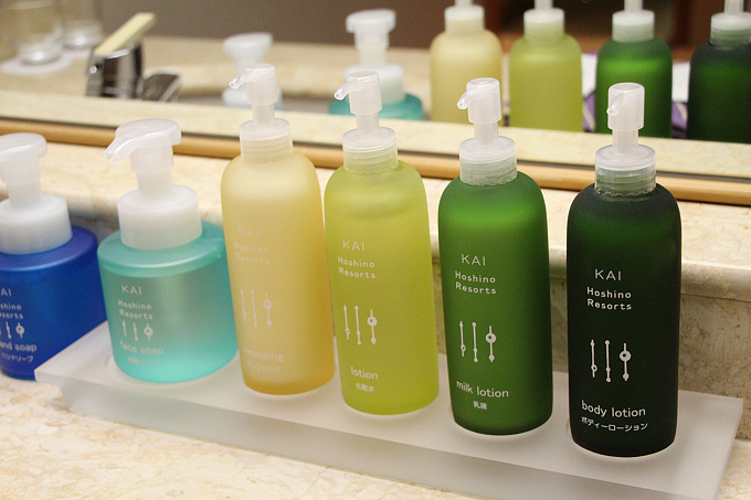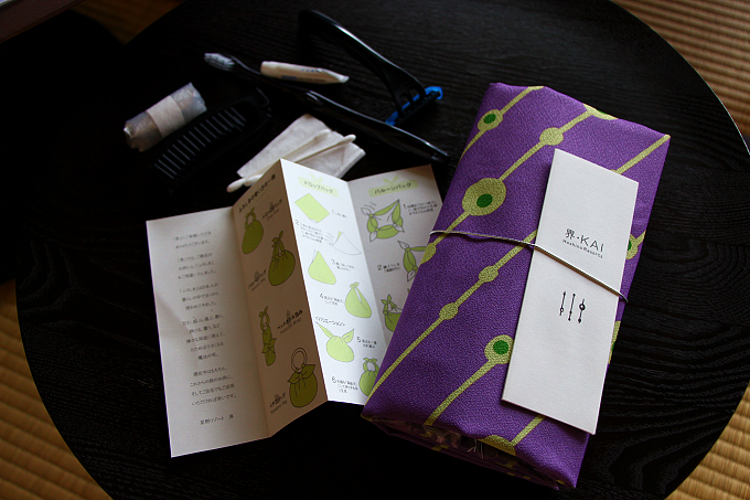 お馴染みの「界オリジナルアメニティ」は、紫色の風呂敷バージョン。