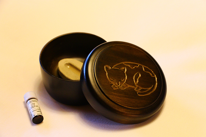 眠り猫を描いた日光彫の箱と、益子焼で作った界日光オリジナルのアロマディフューザーもプラス。