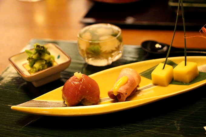 例えば、八寸では手の込んだ一品一品を愛でながら....