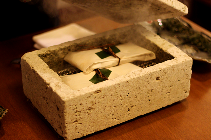 ■メインの台の物には、大谷石で蒸し上げる特別料理「石室焼き」が!