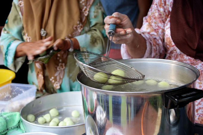 そして、マレーシアの伝統菓子ニョニャ・クエの一つである、「オンデ・オンデ」を作る料理体験も。