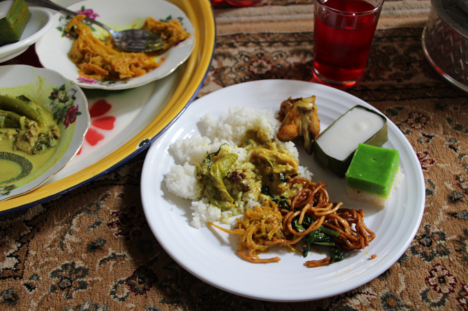 彩り鮮やかなもっちり系の生菓子ニョニャ・クエなどのご馳走が並びます。
