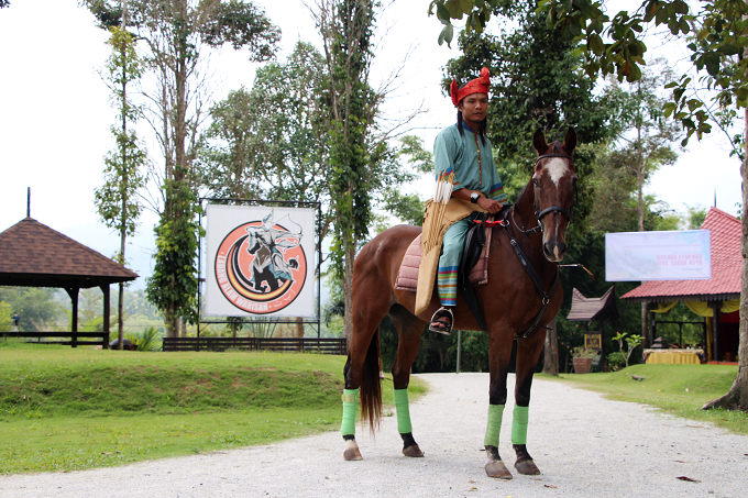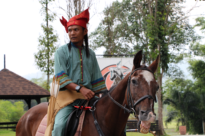 民族衣装をまとうスタッフ。馬にまたがる姿が様になっています。