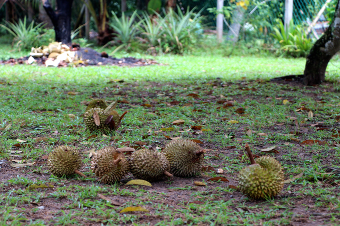 民家の庭先を訪れて真っ先に驚いたことといえば...ゴロゴロと落ちている、フルーツの王様ドリアン!