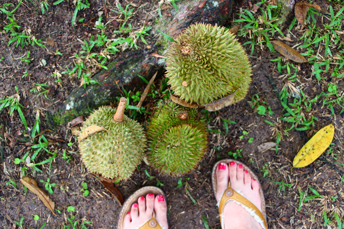 顔より大きなサイズのドリアンが足元にー!(意外にも無臭!?)
