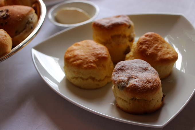 スコーンは、プレーンタイプとドライフルーツ入りの2種を用意。