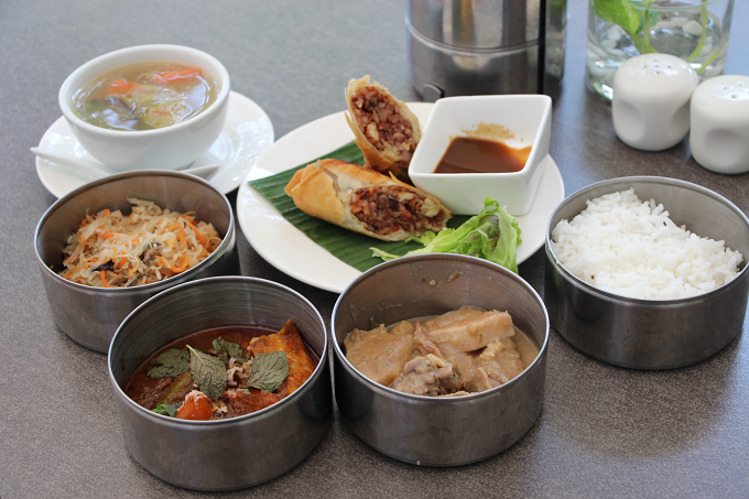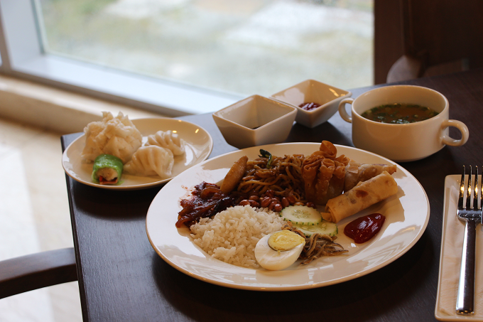 マレーシア料理の「ナシ・レマ」をメインによそい、ホカホカの飲茶をセレクトしてみました。