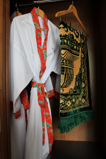 ※右:クローゼット内には、イスラム文化らしい“お祈りマット”も用意。