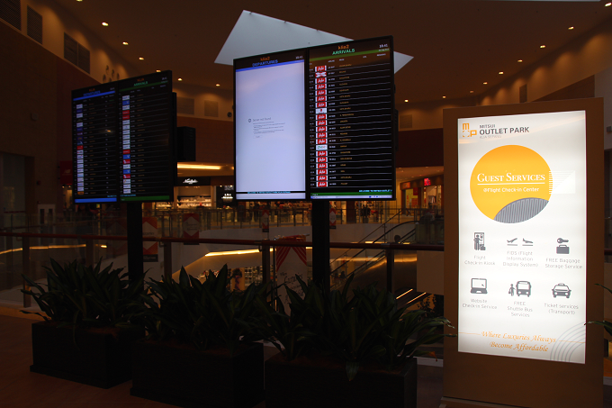 空港利用の来場者向けに、買物前後に搭乗手続きが出来る「自動チェックインシステム」も導入。