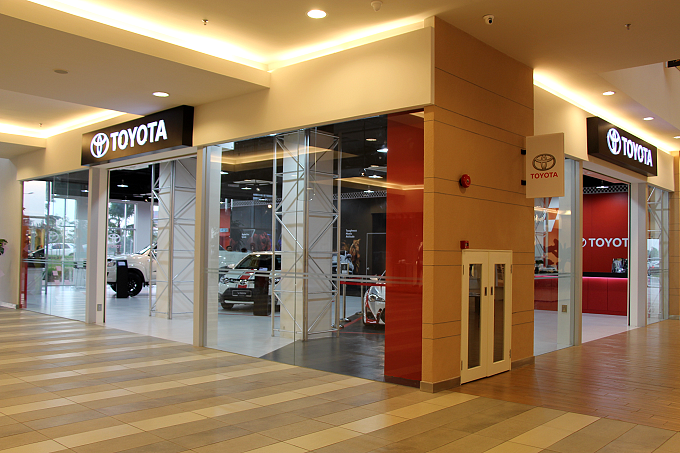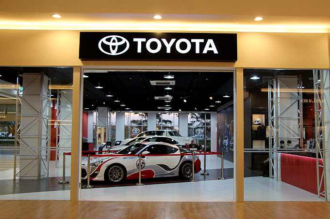アウトレットモール内に「TOYOTA」のショールームを発見。(日本の場合、短期展示以外では見かけない光景)