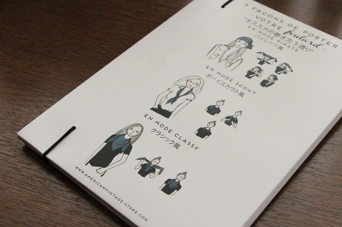スカーフの入っている箱の裏面にはオススメの巻き方も!こういう親切心もステキ。