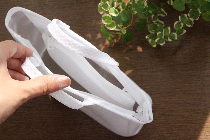 底の方を見るとメッシュ素材の底面がほんの少し浮き上がっているんです。